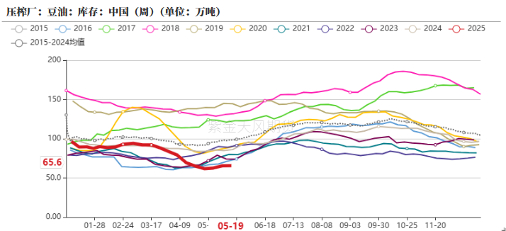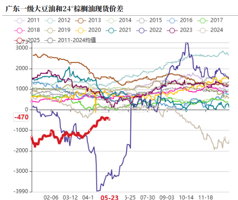 截至到5月23日证券配资炒股开户网站,印度港口毛豆油和毛棕榈油价差60美元/吨,前周130美元/吨。