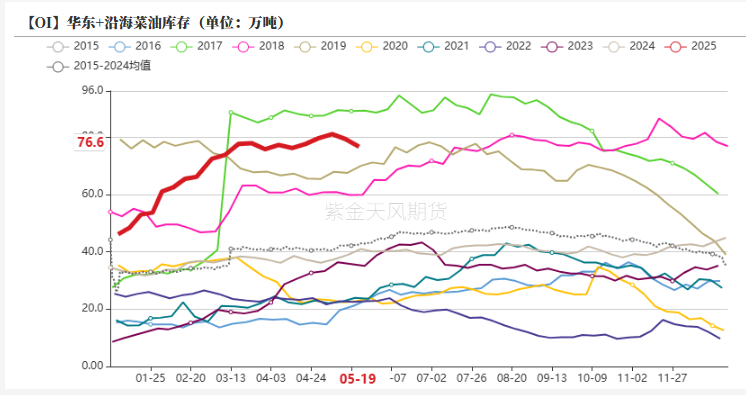 本周菜油表现偏强,虽然近月菜油库存较高,但是货权集中,进口迪拜虽有成交,但是数量较少,俄罗斯菜油报价也高。旧作数量较少,储备采购成交价格也支撑现货,基差变动相对豆油和棕榈油小,但是菜油和其他油脂价差不宜看的过高。